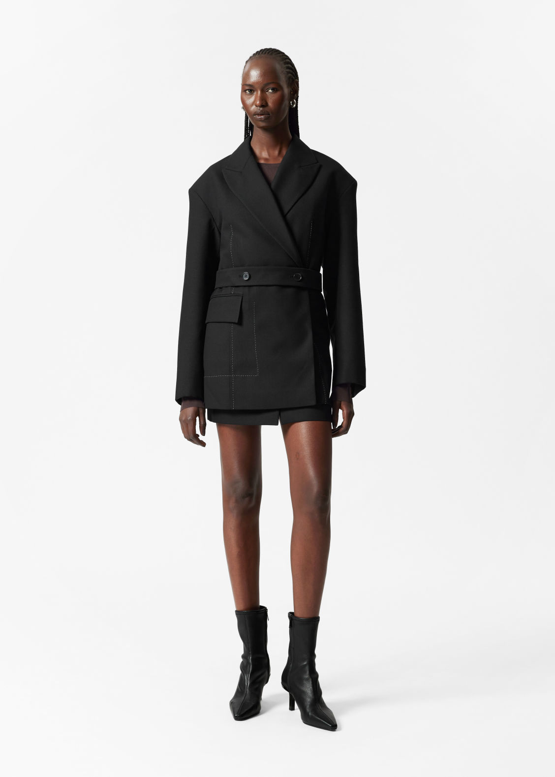 Style Notes: A belted jacket will create a flattering silhouette when paired with just about any dress, but it will look particularly modern alongside 2025s longline hem.