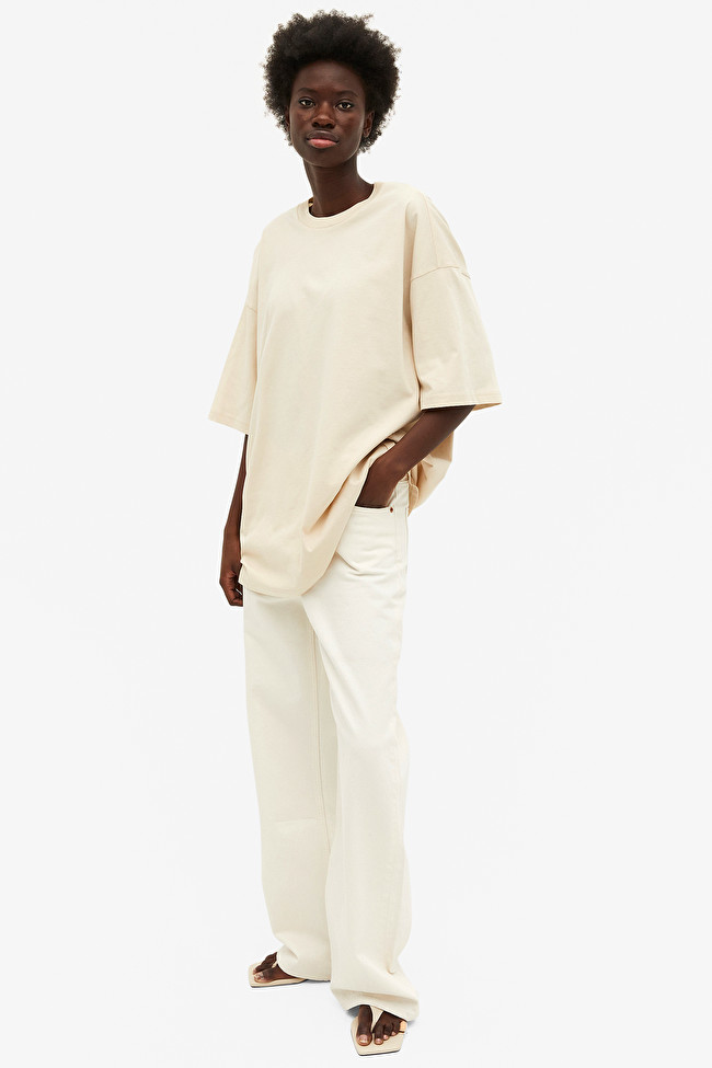 Style Notes: When it comes to relaxed-fit jeans, take inspiration from cool Cali girls and wear them with a pair of flip-flops. A cardigan and bra top will finish the look.