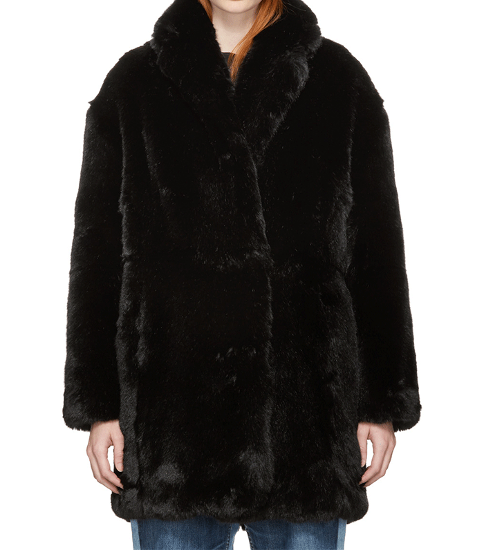 Need a sophisticated yet warm look? Follow Aimee's lead and pair a furry coat with sleek flare jeans and boots.