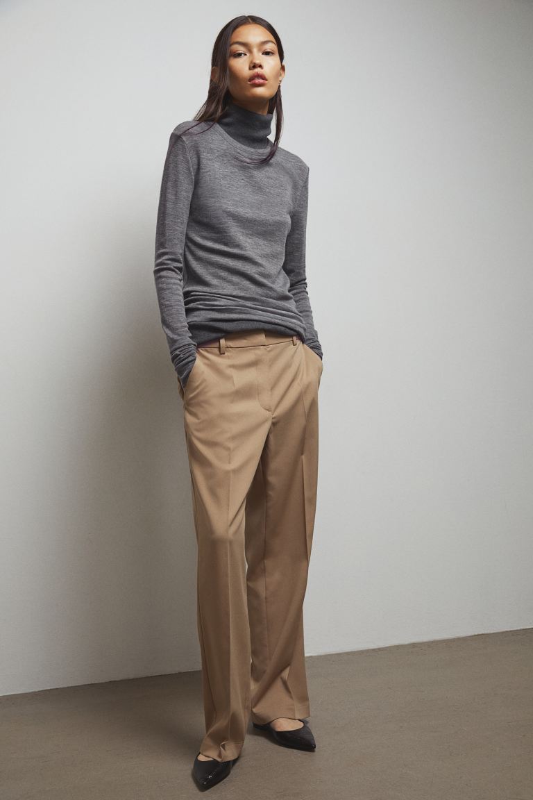 A pleated, black mock-neck top is a fan favorite to wear to the office among our editors.