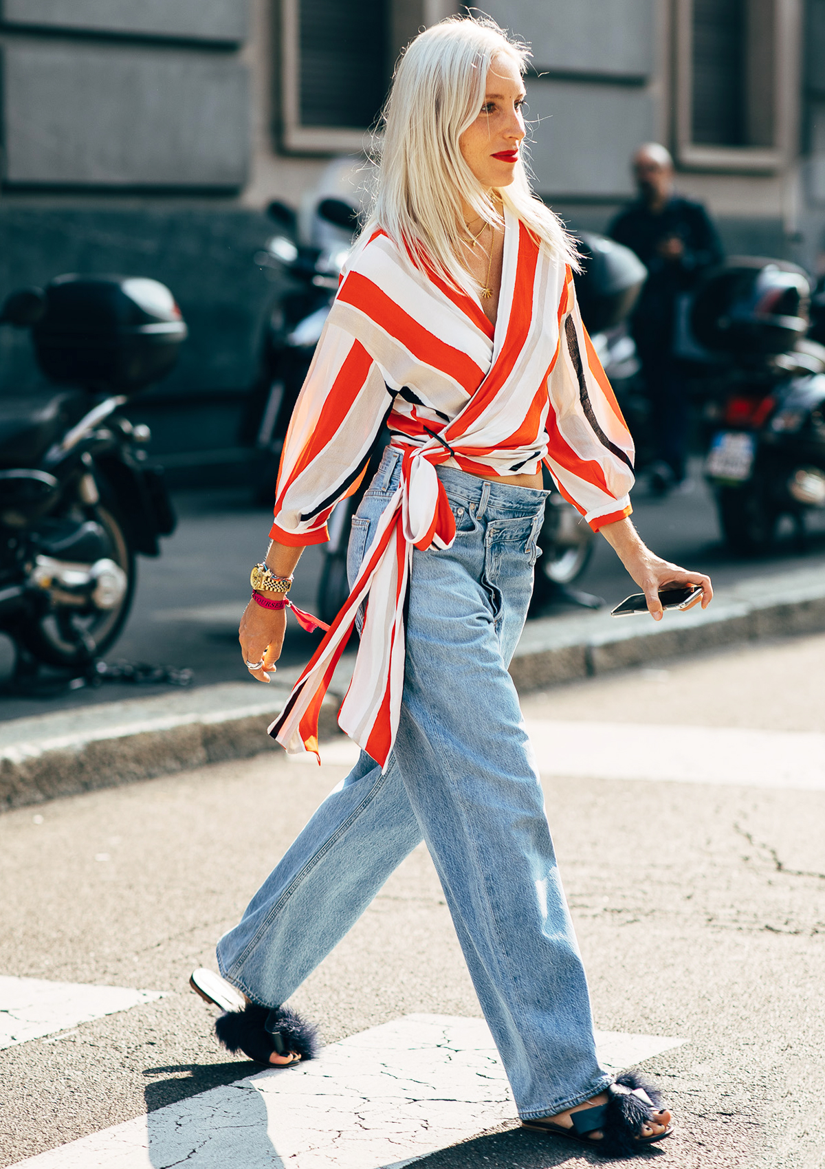 Of course, everything looks good with jeans and slides, too.
