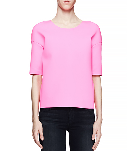 This isn’t your average pink top. Touchable neoprene lends cool structure and a modern look.